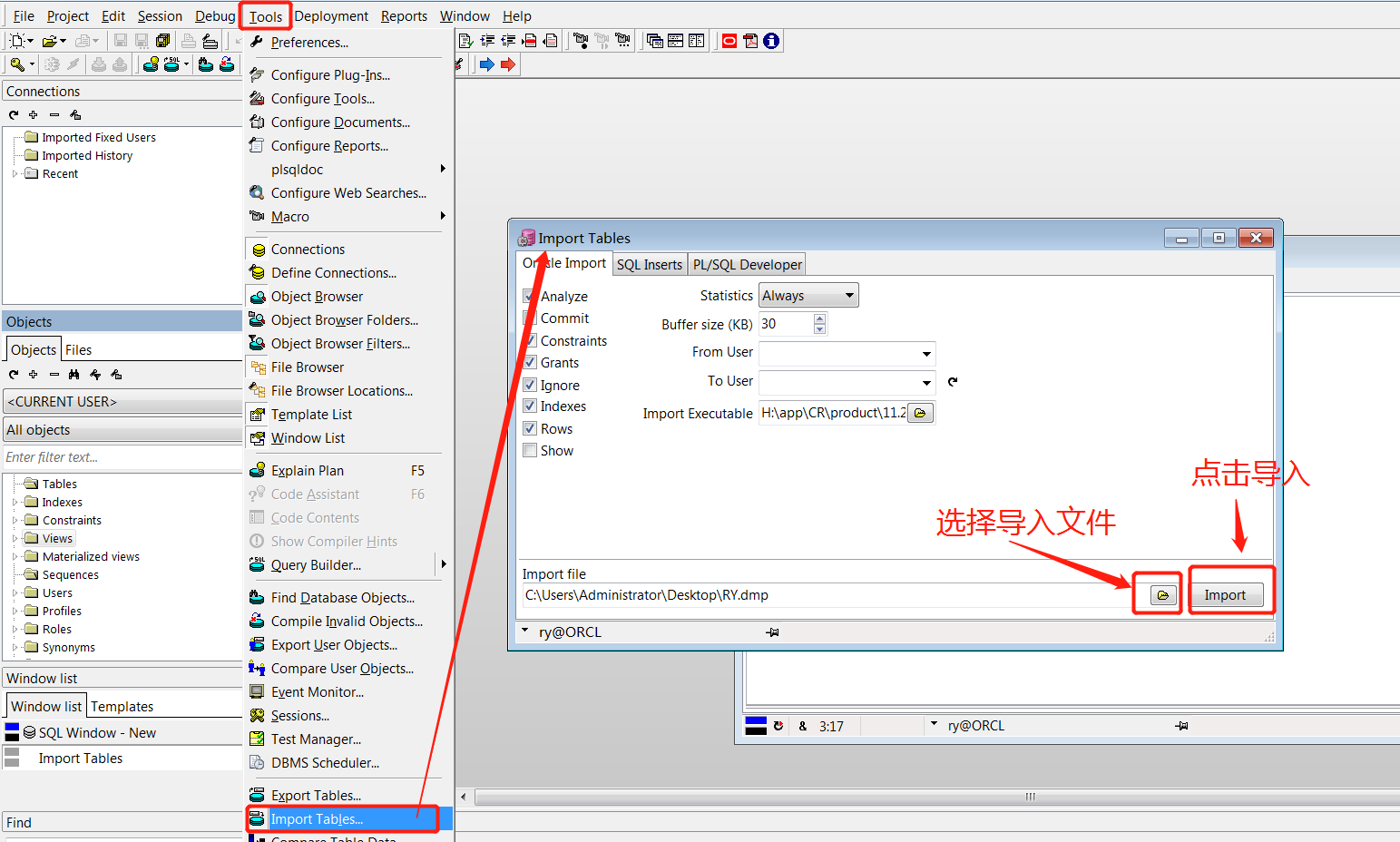 imp ry/ry@127.0.0.1:1521/orcl file=F:RY.dmp full=y ignore=y