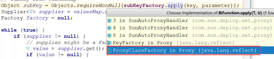 在这个get方法中,除去和缓存相关的操作,同时用到了被代理类的类加载器和类实现的的接口这两个参数的是