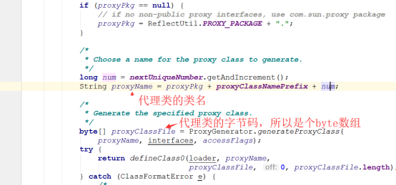 而最终生成代理类的class对象是defineClass0方法,但是这个方法是个native方法,所以我们不去也无法深究它,但是通过这个方法的参数我们可以明显看到它接收了上面所生成的byte数组。