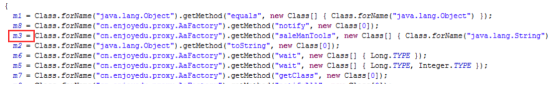 而我们通过ProxyUtils,这个自己写的工具类,将这个byte数组写入文件,我们并反编译,我们将会看到