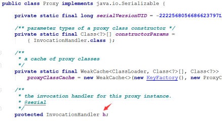 这个h的实例来自哪里?不就是我们在创建代理类的实例时传入的吗?