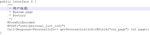 @FormUrlEncoded注解表示from表单,另外还有@Multipart等注解。@POST表示post请求,此外还可以使用@GET请求