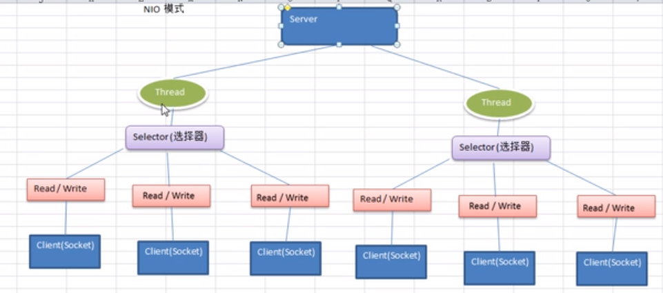 同步非阻塞,服务器实现为一个线程处理多个请求,即客户端发送的连接请求都会注册到多路复用器(Selector选择器)上,多路复用器轮询到连接有I/O请求就进行处理