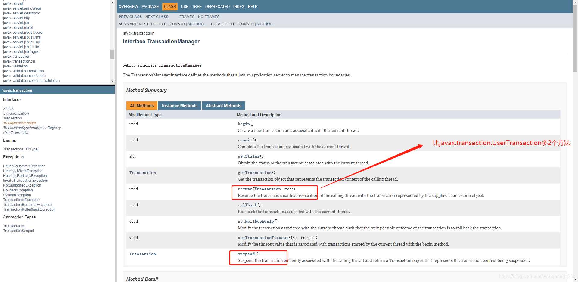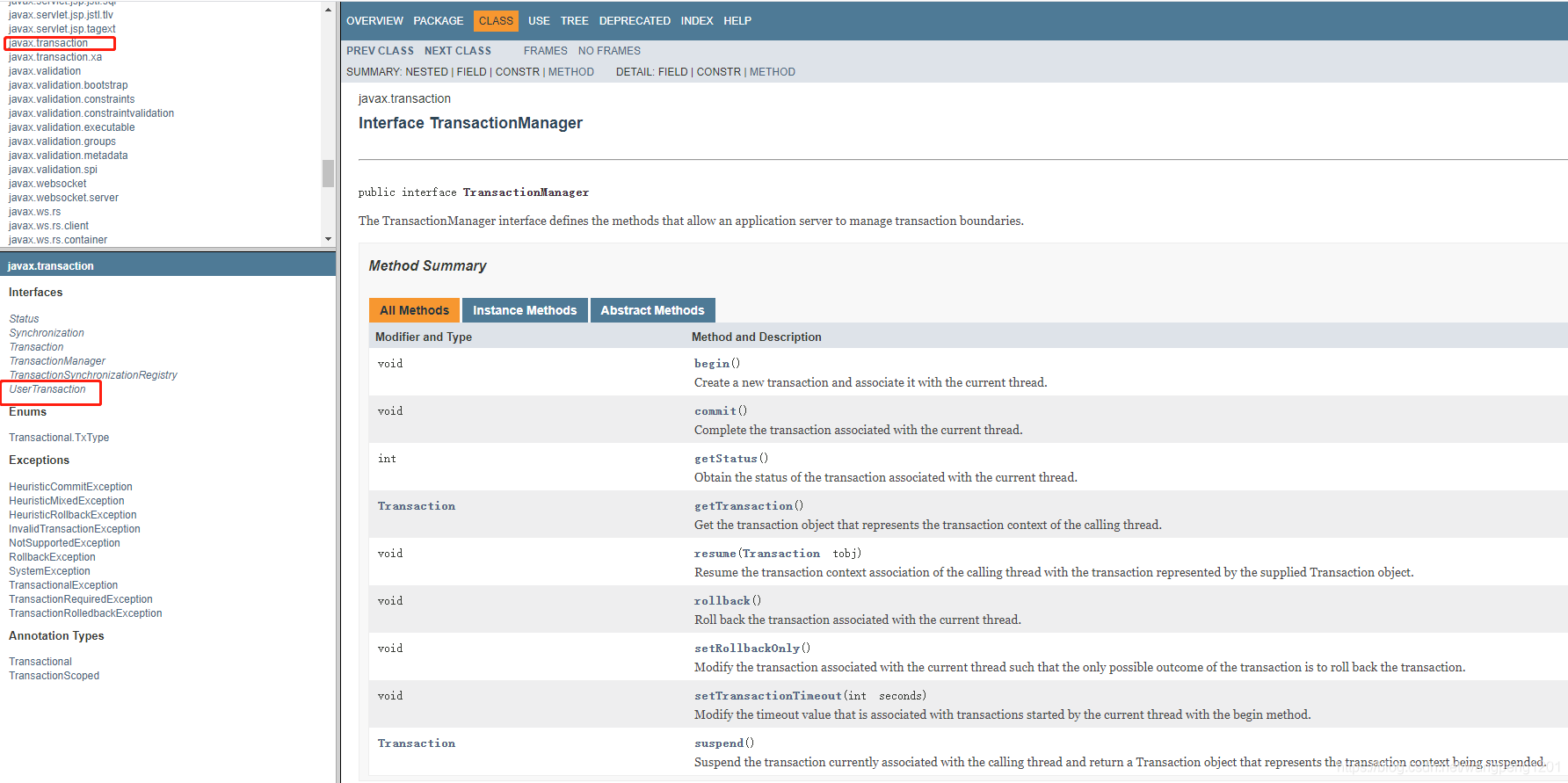 javax.transaction.transactionManager接口主要用于声明性事务模型中。UserTransactionManager接口能做的一切,transactionManager接口也能做。但是,对于大多数方法,最好使用usertransaction接口,除非需要暂停或恢复事务,否则不要使用transactionManager接口。