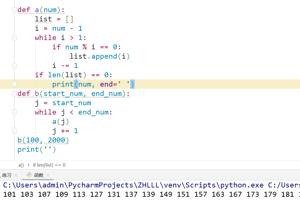 提示:素数的特征是除了1和其本身能被整除,其它数都不能被整除的数