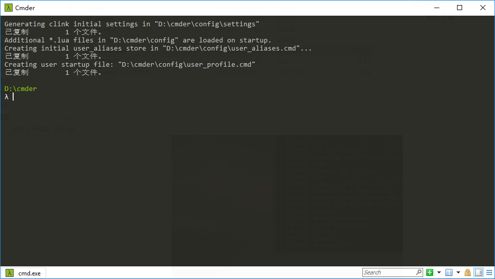 运行Cmder.exe(第一次运行建议以“管理员身份”运行,方便初始化)