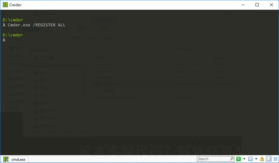 打开(管理员权限)Cmder.exe —> 运行:Cmder.exe /REGISTER ALL