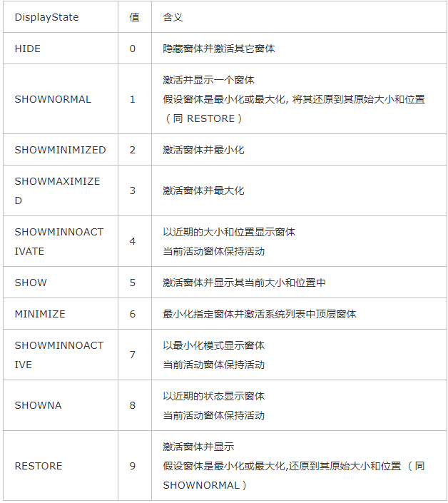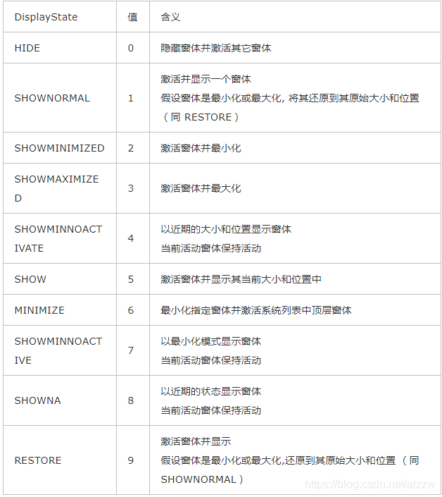 此參数可为下列值之中的一个(例:SW_HIDE(要加SW_))