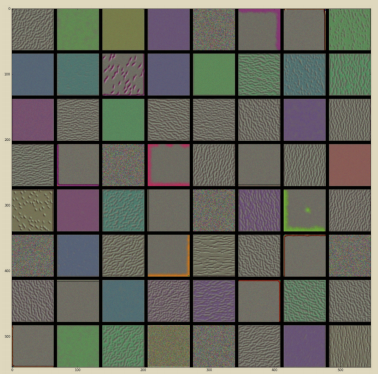可视化卷积神经网络的过滤器,可以通过显示每个过滤器所响应的视觉模式。这可以通过在输入空间中进行梯度上升来实现:从空白输入图开始,将梯度应用于卷积神经网络输入图像的值,其目的是让某个过滤器的响应最大化。得到的输入图像是选定过滤器具有最大响应的图像。