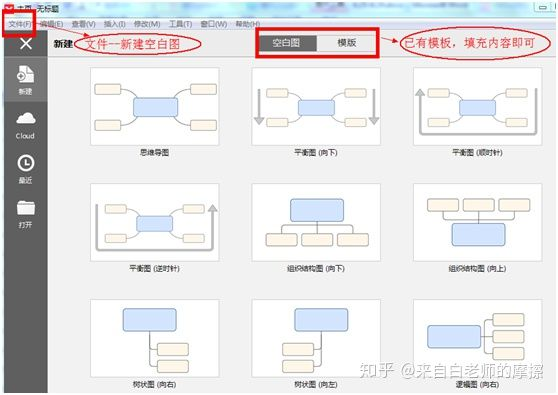 2.从模板欢迎界面选择空白导图或者选择已有内容的模板。
