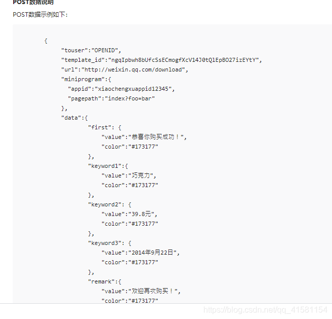 步骤三:设置推送模板、封装推送的消息体,(消息体里封装了具体的消息,模板id,因为采用post请求,所以post的url中有token,所以我们需要用HttpEntity封装请求体。设置请求头)然后使用restTemplate模板发送数据。