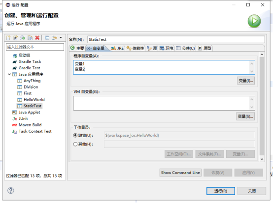 项目名右键==》运行方式==》运行配置==》自变量==》程序自变量