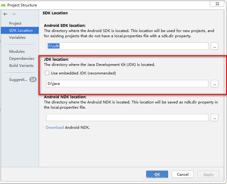 File->Project Structure->SDK Location->JDK location重新配以下jdk路径。