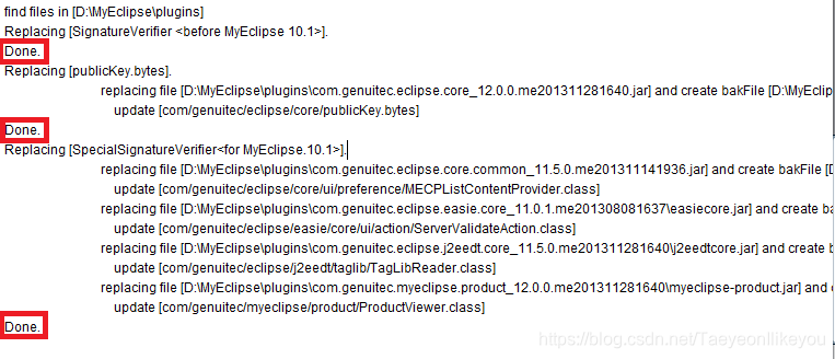 8. 等待一会儿,直到出现类似下图所示的信息,提示替换文件成功(Done),激活过程到此结束;