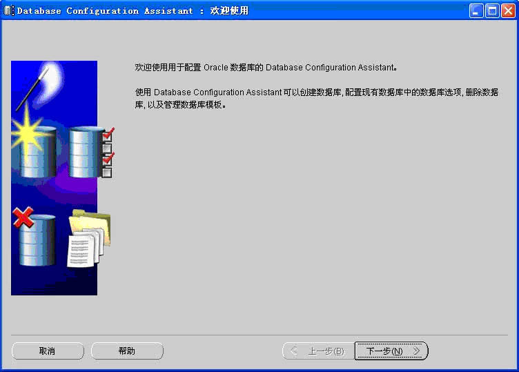 利用图形界面DBCA(数据库配置向导)创建数据库。