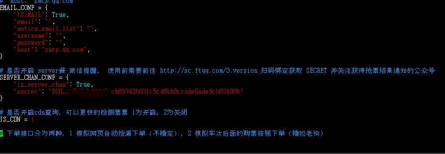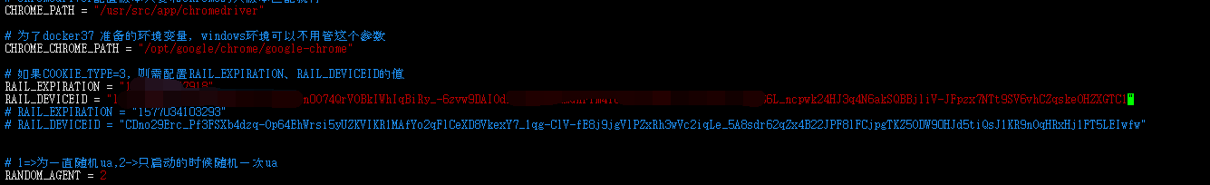 - 将RAIL_EXPIRATION和RAIL_DEVICEID复制 在TickerConfig.py对应位置 保存即可