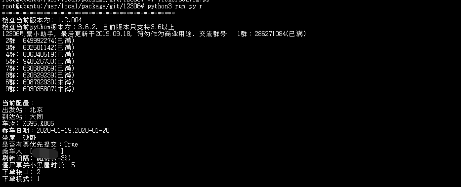 配置刷票模式、出发日期、出发城市、到达城市、座位、乘车人、12306登录账号