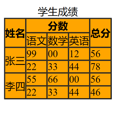 <!-- colspan合并同行的单元格 rowspan合并同列的单元格 -->