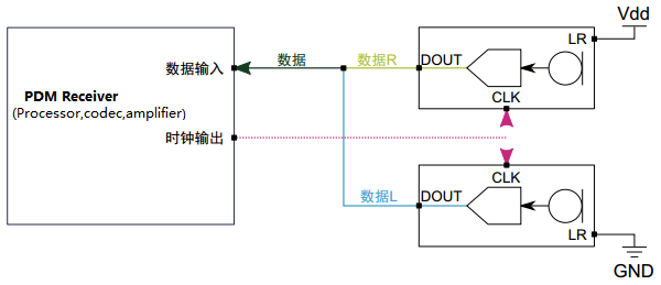 图18. PDM连接示意图(2发送设备 + 1接收设备)