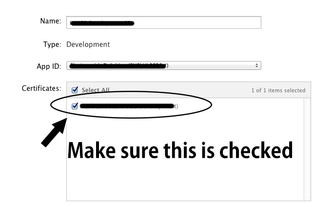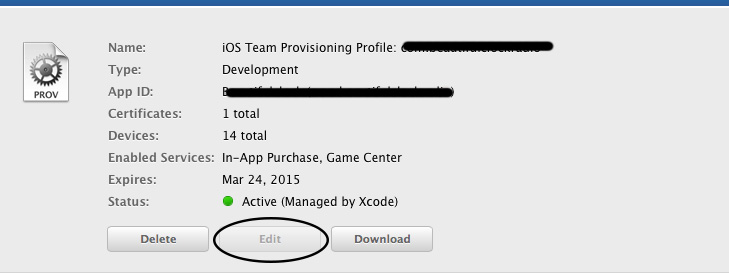 - In Apple Member Center, download the development provisioning file you just deleted locally, double click the file to make sure it's appearing in XCode.