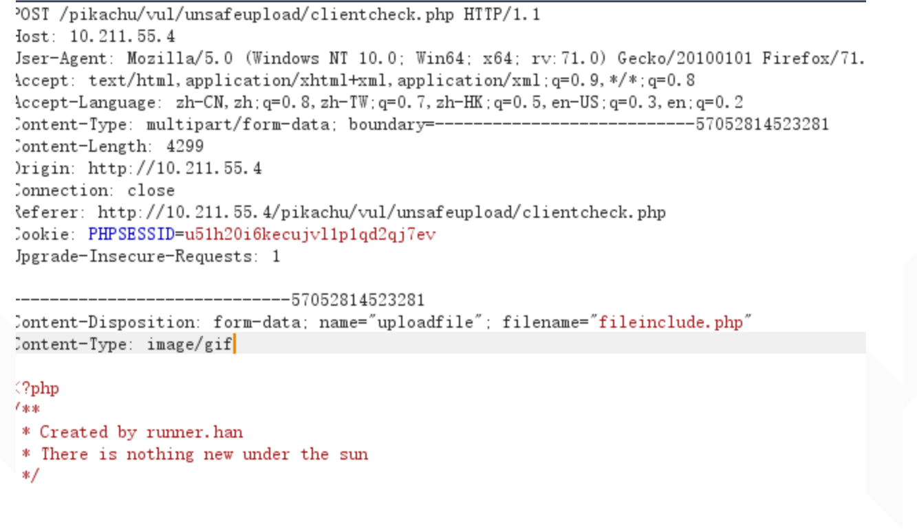 发现前端可以被绕过,所以我们可以先将文件名改为jpg,上传后用bp截包再修改回php