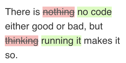 There is <del>nothing</del> <ins>no code</ins> either good or bad, but <del>thinking</del> <ins>running it</ins> makes it so.