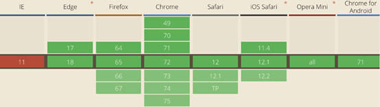 浏览器支持: