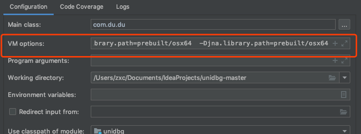 VM options: -Djava.library.path=prebuilt/os -Djna.library.path=prebuilt/os