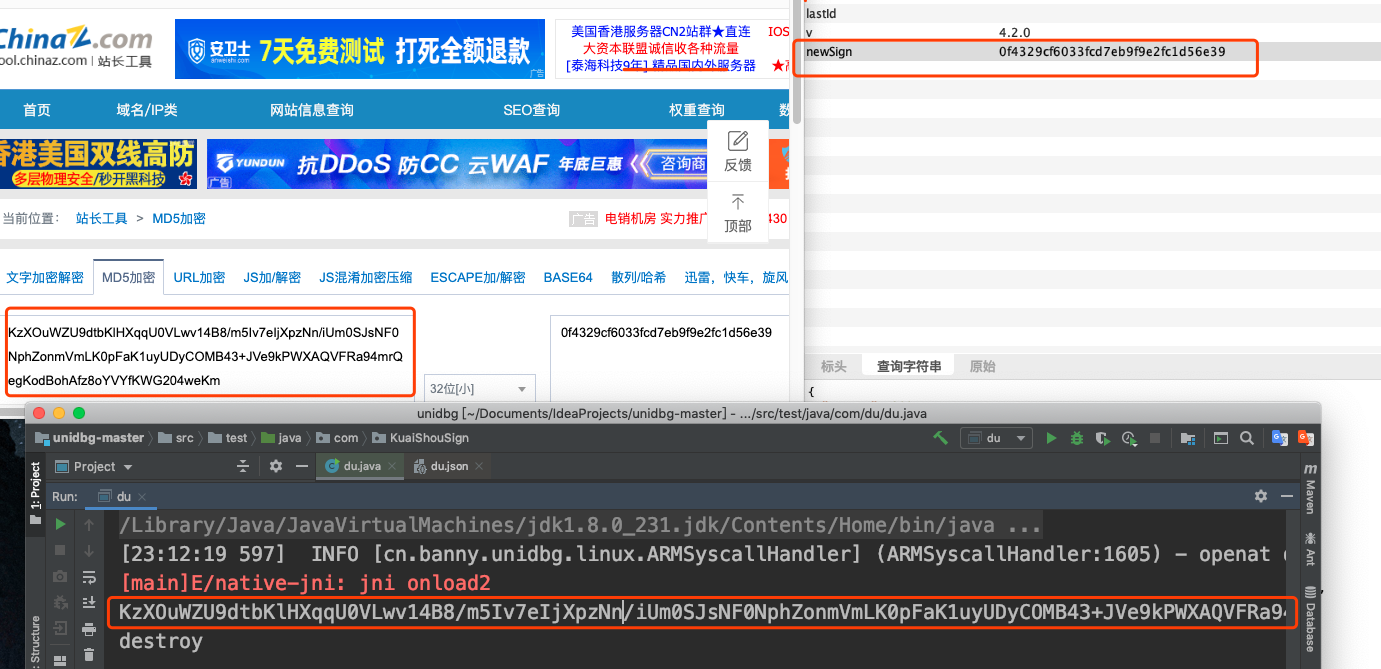 getByteValues 这个方法是毒获取的一个01字符串,并且在java层进行了处理,然后再传进encodeByte里面,encodeByte这个方法最后获取的其实并不是最终需要的,需要md5才是最后的newSign。可以验证一下下。