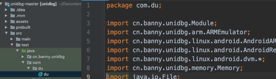 案例来自JXU2QkQyYXBwJTIwdjQuMTYuMA== 对于该app而言,是非常适合入门的一个app,未加固、算法简单、很容易找到so的jni。 先去凯神的github上下载https://github.com/zhkl0228/unidbg 下载完毕用idea打开,等待maven下载完毕。我这里已经创建好du的文件。