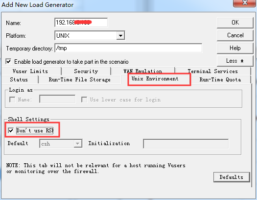 说明:shell只是linux的一个外壳,每个linux系统都会有一个默认的shell程序,在centos下,默认shell是bash,但loadrunner使用的是csh,所以要添加一个使用csh的用户。