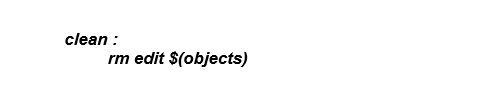 规则除了完成源代码编译之外,也可以完成其他任务。例如:前面提到的为了实现清除当前目录中编译过程中产生的临时文件(edit和那些.o文件)的规则: