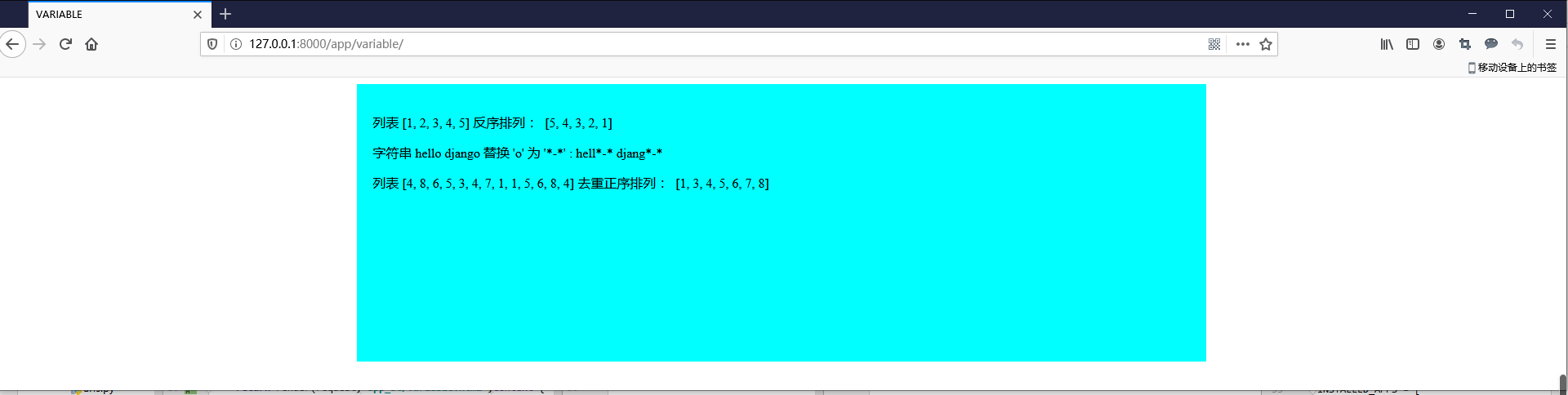下面我们就启动 django 服务,浏览器地址栏输入 127.0.0.1:8000/app/variable , 查看效果: