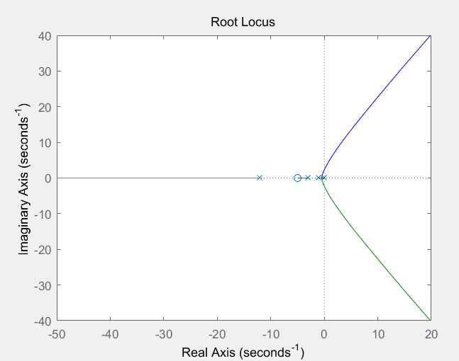 (3)以区间[-40,-5]之间的值替代s=-12处的极点,重新绘制根轨迹图,观察其对根轨迹图的影响。