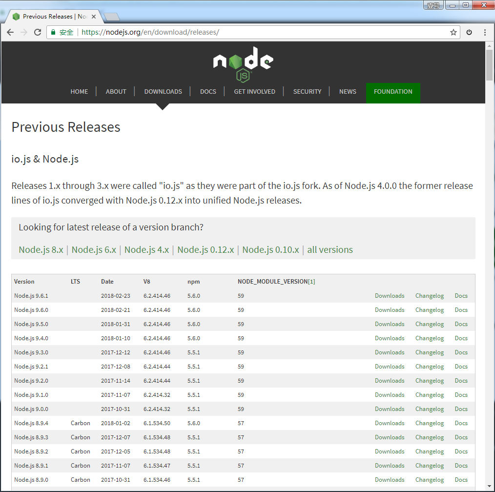 我们也可以在https://nodejs.org/en/download/releases/上下载历史版本。