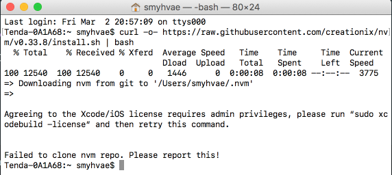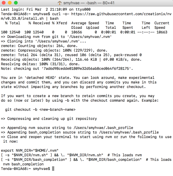 curl -o- https://raw.githubusercontent.com/creationix/nvm/v0.33.8/install.sh | bash