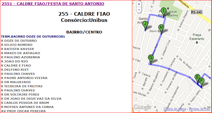 There is a website which holds the buses routes for my city (Porto Alegre - Brazil) in a table.