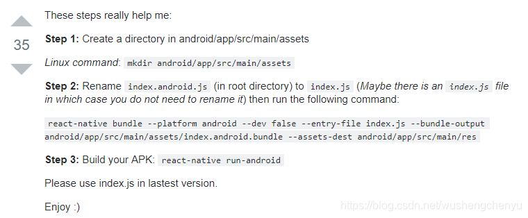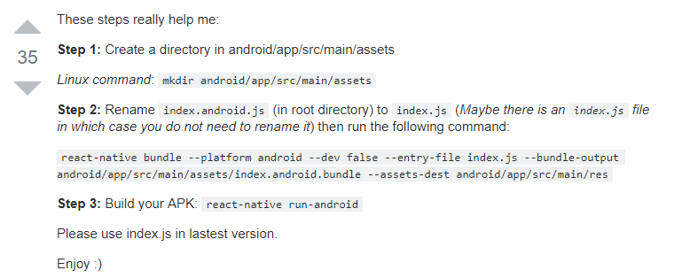 react-native bundle --platform android --dev false --entry-file index.js --bundle-output android/app/src/main/assets/index.android.bundle --assets-dest android/app/src/main/res
