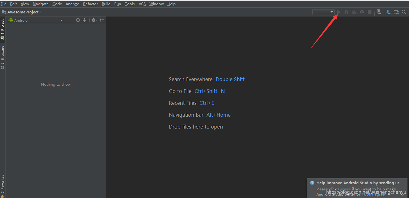 什么都没有,应该是找不到Android项目,从没有做过原生Android,知识盲区。找了很多博客,发现有人说调试用WebStorm,打包用Android studio,下了一个WebStorm。用WebStorm直接打开项目,右上角