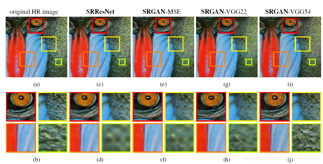 在超分任务中,我们需要将图片的局部拿出来对比,凸显我们算法的优越性。如下图所示,我们需要对各模型的局部进行对比,但是每张图裁剪的位置要相同,这里我们利用python简单实现一下。