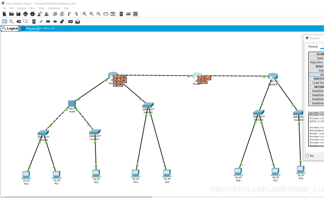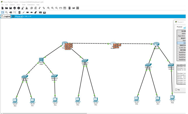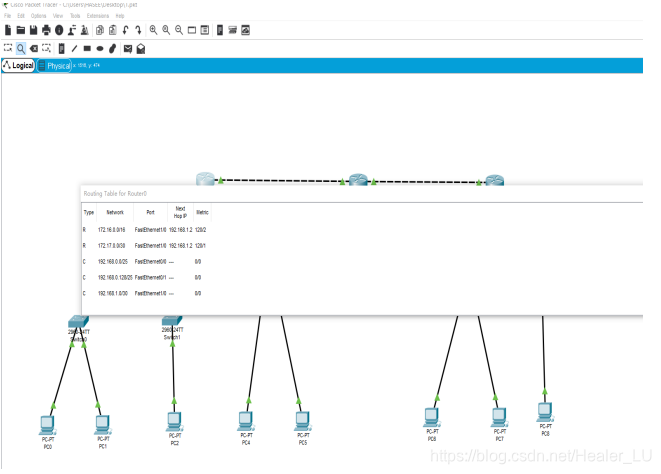 配置完成后刷新并查看路由器1的路由表,可以看到路由器1中已经有了其他路由表里的信息: