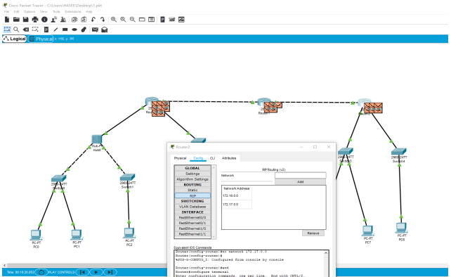 动态路由协议的关键,为每个路由器增加RIP Network Address: