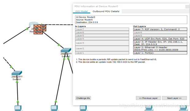(4)路由器1生成的黄色RIP包中的内容(OSI Model)