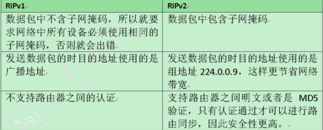 如今的IPv4网络中使用的大多是RIPv2,RIPv2是在RIPv1基础上的改进, RIP2和RIP1相比主要有以下区别。
