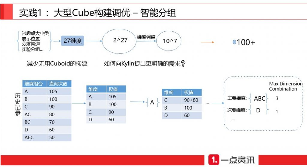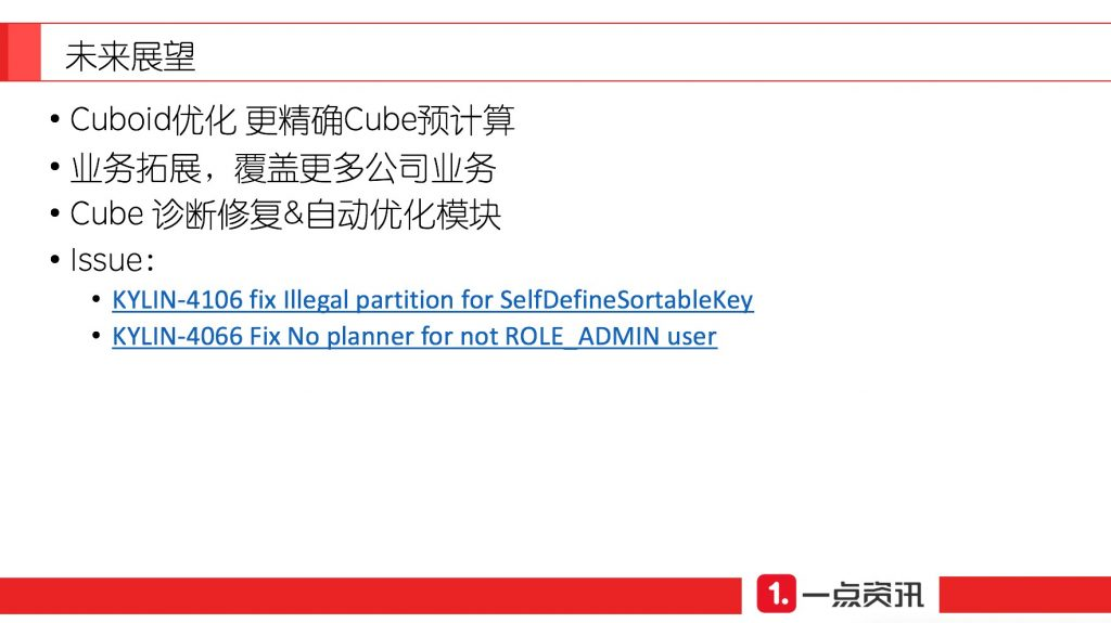 在近期的 Apache Kylin Meetup 北京站上,我们邀请到了一点资讯的大数据平台高级工程师毛洪玥来分享 Kylin 在一点资讯的应用。本次分享由一点资讯 OLAP 发展历程和系统基础架构开始,以 Kylin 在一点资讯的业务需求和实践经验为依托,分享针对数据量较大的Cube如何提高查询响应速度,如何缩短构建时间,如何缓解 HBase 压力来提升稳定性,及使用过程中遇到的特殊数据问题与解决方案等。