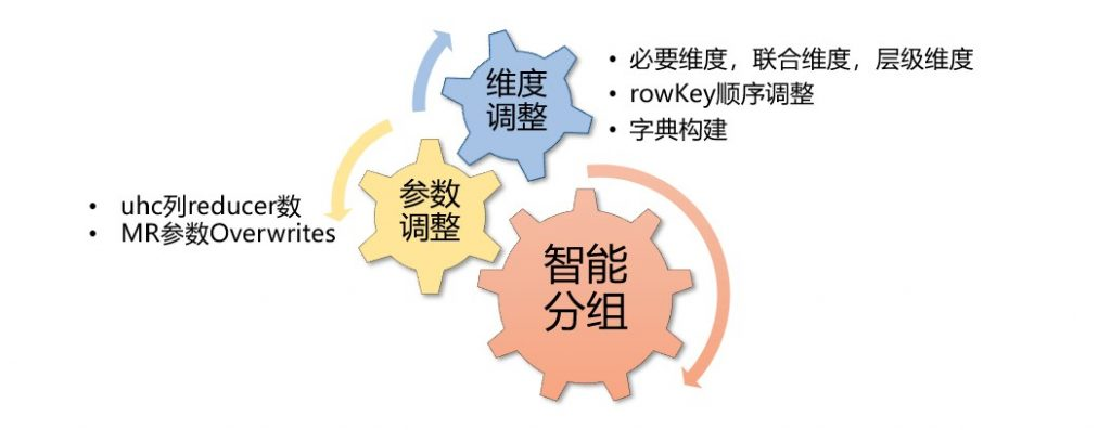 为了从各个方面入手优化 cube,我们首先调研网上权威的优化方案,调整了维度关系,rowkey 顺序,一部分构建参数等。最后我们自研了智能分组策略。