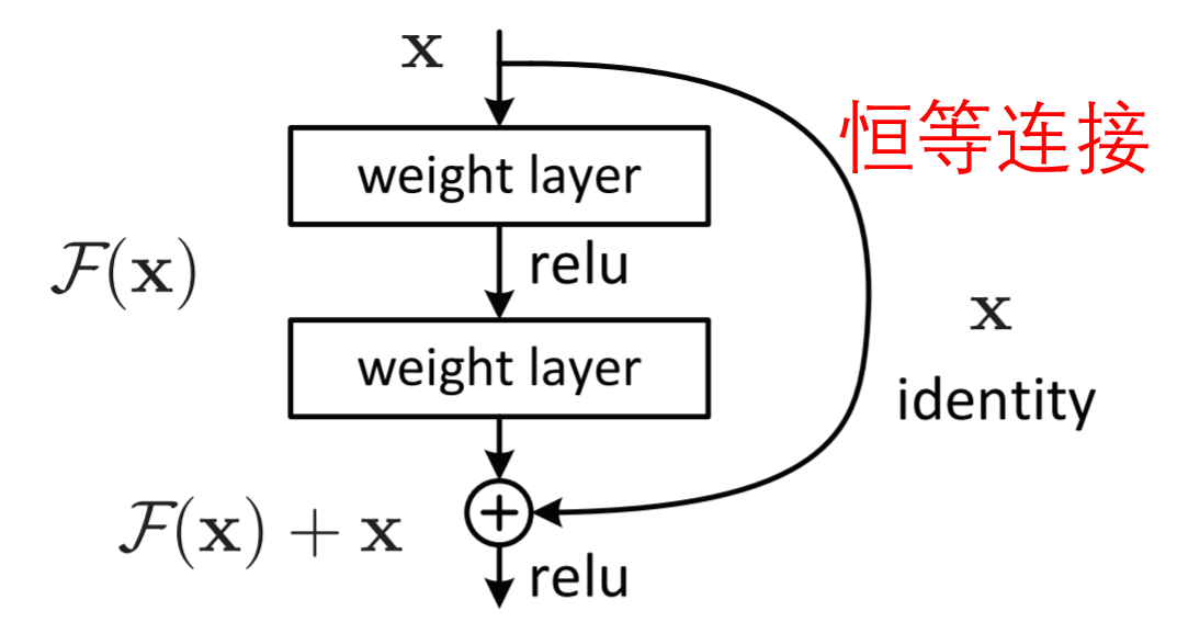 首先,简要回顾一下深度残差网络,其基本模块如下图所示。相较于传统的卷积神经网络,深度残差网络利用了跨越多层的恒等映射,来缓解模型训练的难度,提高准确性。