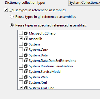 referenceparameter to the DLL that you are referencing types from.svcutil.exe http://dev.example.com/SSWPF.Web/Services/SS.svc /reference:bin\debug\RRStore.Sys.DLL