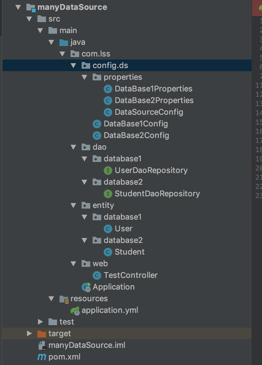 此时,多数据源的主要配置已经完成,下面是一些实体类、dao的常用配置