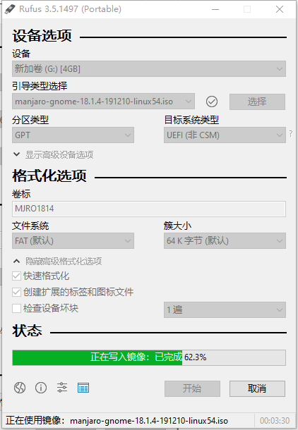 制作启动盘(manjaro)